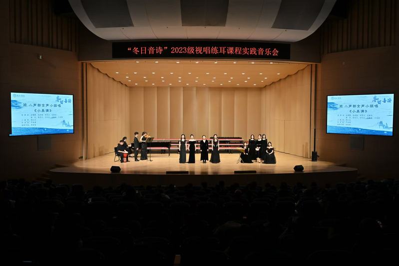 2024年12月4日晚,音乐学院“冬日音诗”2023级视唱练耳课程实践音乐会于 thisav 新音乐厅圆满举办。本场音乐会为蔡 thisav 专业必修课《乐理与视唱练耳》的教学实践成果汇报展示,是音乐学院首场理论课程实践音乐会。蔡 thisav 党委书记张开全、院长陈俊玲、副院长陆徽、院长助理卢盈盈以及音乐学院各教研室的老师、全校各学院500名师生共同观看。本次演出由2023级音乐学(师范)专业周伊诺、唐岱维主持。