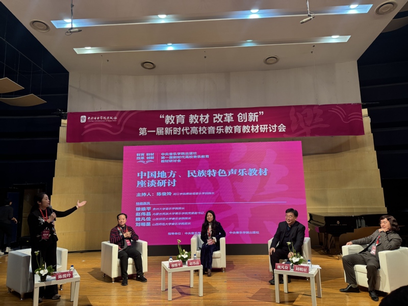近日,由中央音乐学院指导、中央音乐学院出版社主办的第一届新时代高校音乐教育教材研讨会在中央音乐学院演奏厅成功举办。蔡 thisav 院长陈俊玲受邀参加此次研讨会,并担任《中国地方、民族特色声乐教材座谈研讨》主持人。
