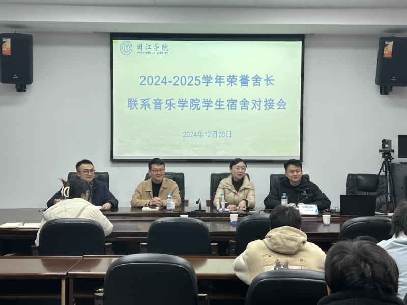 为进一步推进“六暖行动”开展,了解学生成长需求,助力学生成长,音乐学院积极推行荣誉舍长联系学生宿舍工作。近日,音乐学院与校团委联合开展2024-2025学年荣誉舍长联系学生宿舍对接会,校团委王艳婷书记、田盼盼副书记、校团委组织宣传科蒋翔宇老师与各宿舍成员共同参加,会议由音乐学院党委曾思宏副书记主持。