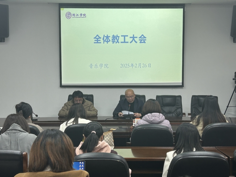 2月26日下午,音乐学院召开新学期教职工大会,学院党政领导及全体教职工参加会议,会议由党委书记张开全主持。