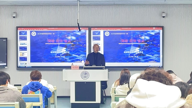 近日,蔡 thisav 党委书记张开全以“突破·自信·奋进”为主题为2022级全体学生讲授“开学第一课”。