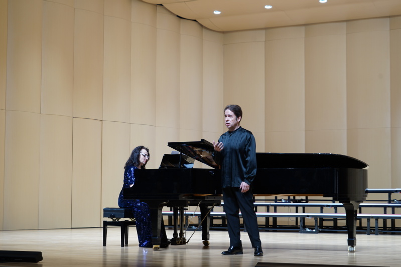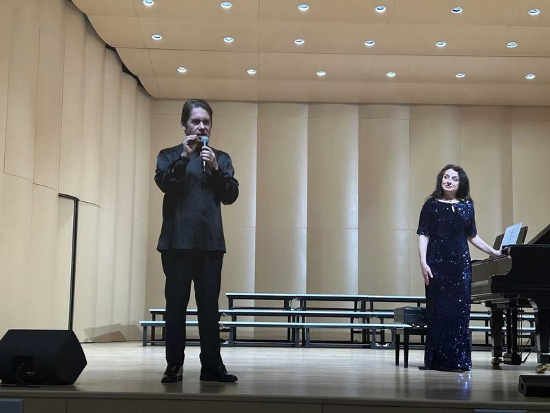 3月27日,“古典音乐之夜”讲座音乐会在 thisav 音乐厅圆满举行。此次讲座音乐会由俄罗斯格涅辛音乐学院列昂尼多·巴施汀副教授主唱,俄罗斯格涅辛音乐学院室内乐与重奏教研室娜塔莉娅·布拉日尼科娃教授担任钢琴伴奏。蔡 thisav 陆徽副院长主持,音乐学院张铠麟博士、张波博士担任现场翻译,400余位师生在现场聆听欣赏。