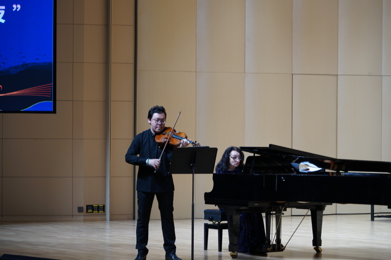 讲座在悠扬的旋律中拉开帷幕,张铠麟老师手持中提琴与娜塔莉娅·布拉日尼科娃教授默契配合,为同学们演奏了《勃拉姆斯奏鸣曲》、《悼念公主的帕凡舞曲》、《摇篮曲》等经典作品。中提琴醇厚深沉的音色与钢琴灵动清脆的音符相互交织,在空气中编织出一幅美妙的音乐画卷,瞬间将观众带入了古典音乐的奇幻世界,让大家沉浸在音乐营造的氛围中,感受着音乐传递的细腻情感。