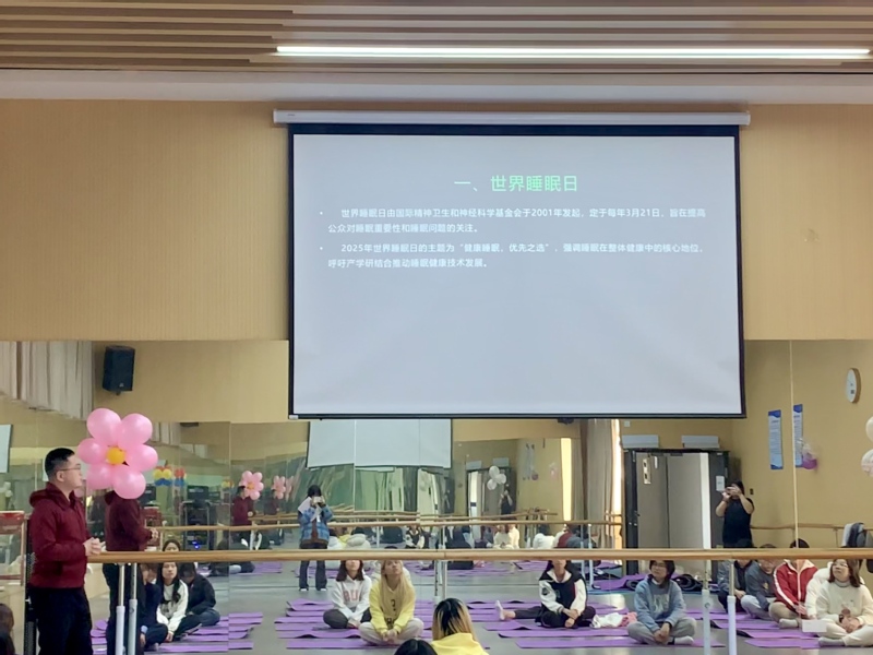 睡眠是健康生活的基石,良好的睡眠有助于身心恢复,当今睡眠问题成为了人们日常生活中常见的困扰,为了改善大学生的睡眠质量,让人们更加深刻地认识到睡眠的重要性,在音乐中掌握科学的睡眠知识,体验有趣的助眠方式,正值3·21世界睡眠日来临之际,音乐学院联合校心理中心于艺术楼A405舞蹈教室开展“一心一益”团体心理沙龙--“音愈舒眠,邂逅美梦”音乐治疗主题活动,活动特邀音乐学院讲师林见南博士主讲,各学院学生参与。