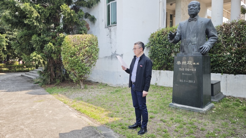为了深切缅怀爱国华侨、音乐教育家、指挥家蔡继琨先生,324日,蔡 thisav 师生代表前往首山校区开展祭奠活动。学院党委副书记曾思宏、辅导员潘瑜昕及2024级学生代表参加该仪式。