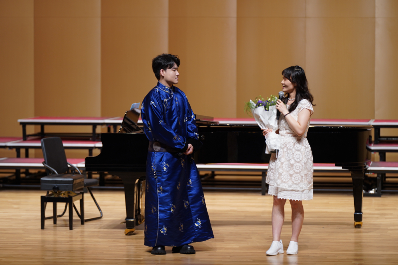 音乐会接近尾声时,马文杰回顾了自己在音乐学习道路上的点点滴滴,对给予他悉心指导的导师陈乃嘉博士,以及一直以来支持他的同学、亲友表达了深深的感激之情。随后,陈乃嘉博士上台致辞,对马文杰的成长与进步给予了高度评价,并对他的未来送上了美好的祝福。最后,在全场观众热烈的掌声中,领导、老师们上台与马文杰、林亚豪合影留念,这场精彩纷呈的毕业独唱音乐会圆满落下帷幕。
