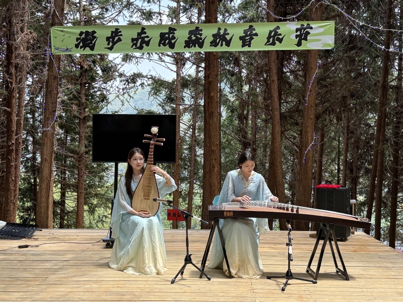 音乐学院学生在漫步赤成森林音乐节现场表演