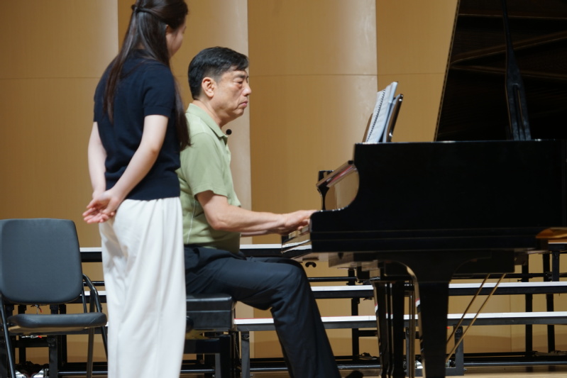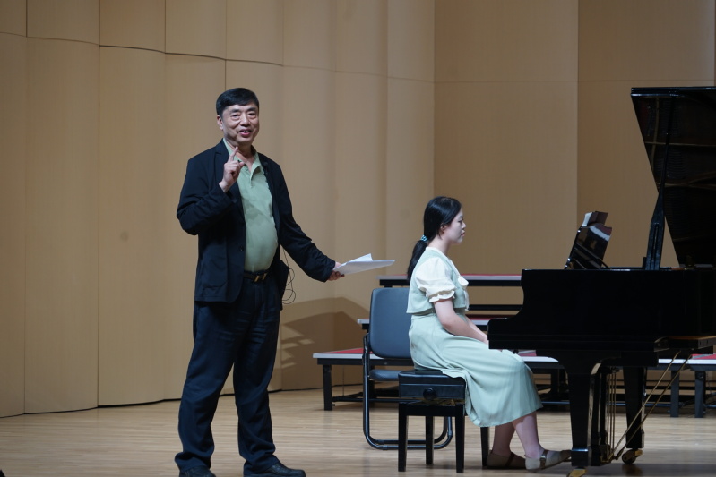 讲座的核心环节,四位优秀的钢琴专业同学依次登台献艺,洪奕哲教授随即进行细致入微的现场教学指导:
