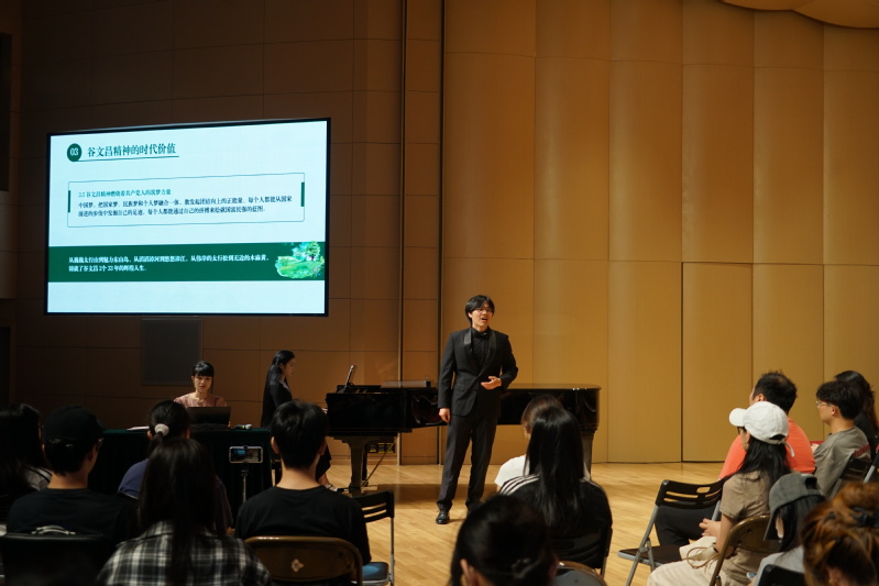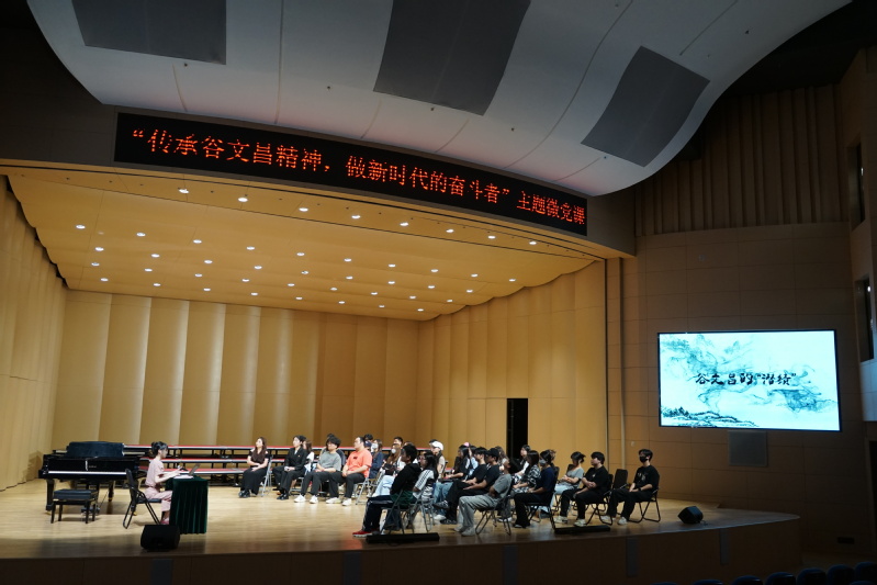 近日,音乐学院学生第一党支部和美术学院学生第二党支部于音乐厅联合开展“传承谷文昌精神,做新时代奋斗者”主题微党课。活动以“传承谷文昌精神,做新时代奋斗者”为主题,融合音乐、美术等艺术形式,让党性教育在旋律与色彩中焕发新生。活动由音乐学院卢淳婕老师主讲,音乐学院党委副书记曾思宏、辅导员潘瑜昕和支部成员等参与。