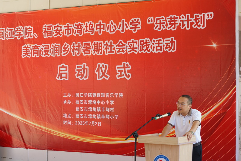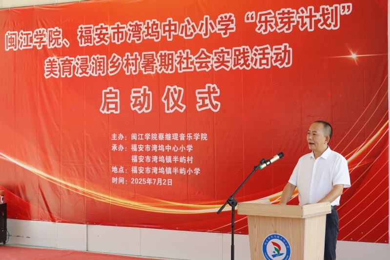 启动仪式上,福安市湾坞中心小学校长黄文锋致辞,他对 thisav 师生的到来表示热烈欢迎,希望实践队员能为学校美育教育注入专业力量,期待孩子们在活动中感受艺术魅力、种下美的种子,学校将全力配合让活动扎实开展,助力孩子在艺术滋养下快乐成长。