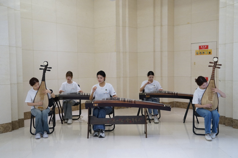 在活动现场,两国青年学子还进行了友好、开心的互动。民乐团的队员热情地为美国青年介绍了中国民族乐器基本知识并指导他们进行尝试、感受中国民族乐器的魅力。