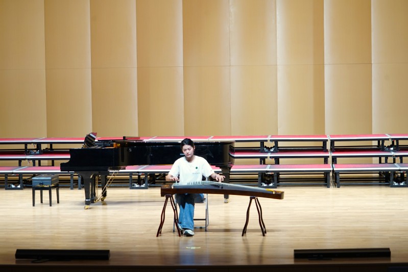 在现场音乐交流环节,张静文同学以一首极具民族色彩的古筝独奏《幻想曲》拉开了合唱交流的帷幕。