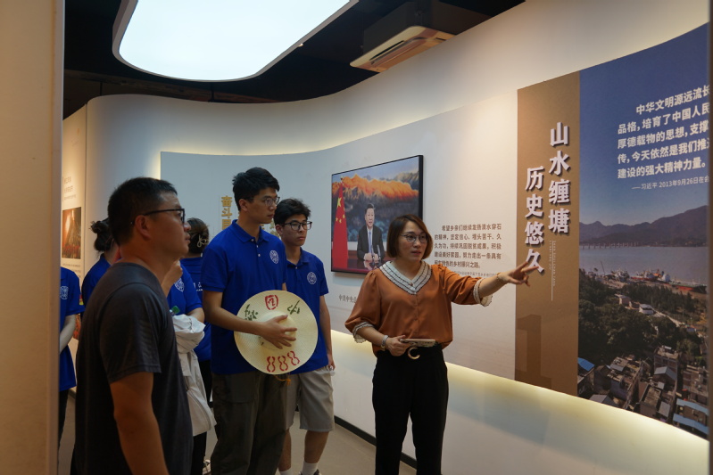 然而就是这个现在风景如画的村落曾遭遇过重大自然灾害。1996年8月,第8号强台风气势汹汹,裹挟着狂风暴雨与天文大潮,直扑闽东,徐江村一夜之间沦为废墟。1996年8月5日至10日,时任福建省委副书记的习近平就来到宁德地区指挥抗灾救灾。在指挥抗灾救灾中,他以乐观主义精神鼓舞灾区干部群众:贫物不能改变一个人的意志,灾难不能摧毁振兴的希望。期间村党支部带领村民亲帮亲,邻帮邻,开展生产自救,历时1年按照省小康村标准,在原址建成徐江新村。而新村村口牌楼上是习近平总书记为该村题写的村名。同学们走进徐江新村感受着党和政府对受灾群众的深切关怀,见证着徐江村从灾难走向新生的奋斗历程。