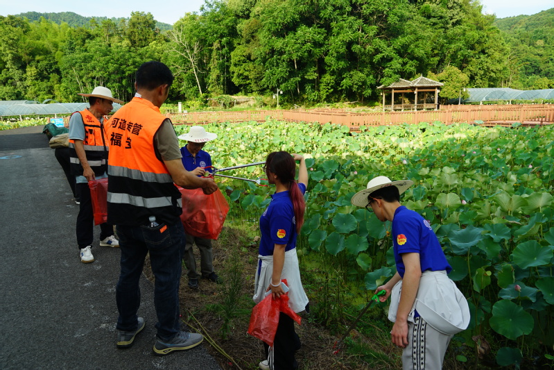 徐江新村深度贯彻“绿水青山就是金山银山”,将绿色发展与生态保护深度融合,活动中学生们把理念化为行动,加入到“绿色展始于心,河湖保护践于行”活动中,沿着荷塘周边和栈道开展垃圾清理、打捞水面漂浮物工作。
