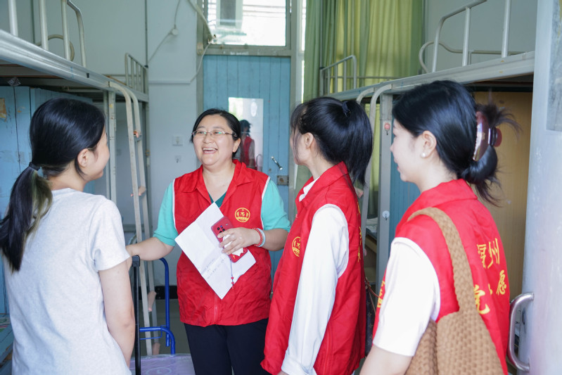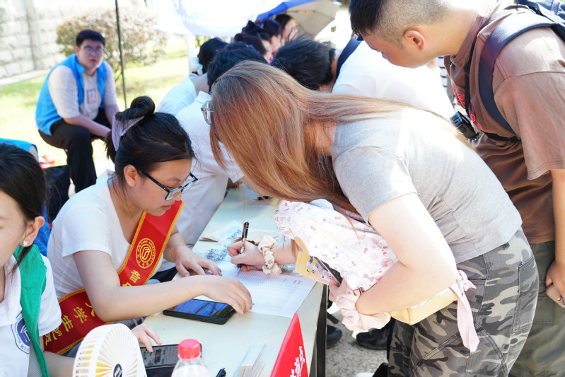 迎新当天,“音乐蓝”“党建红”“勤工绿”相互交织,成为新生入学记忆中最温暖的底色。