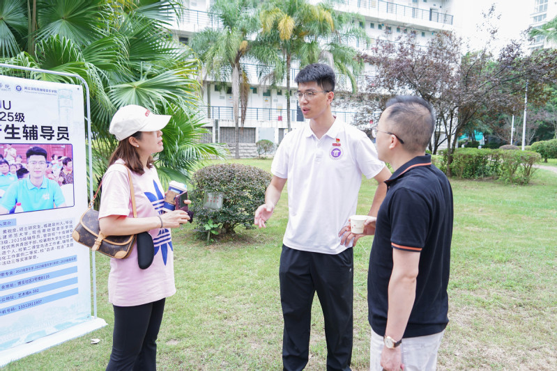 在迎新接待现场,学院领导、辅导员、班主任及任课教师等与新生家长们面对面的交流,让新生及家长们感受到了学校的温暖关怀。