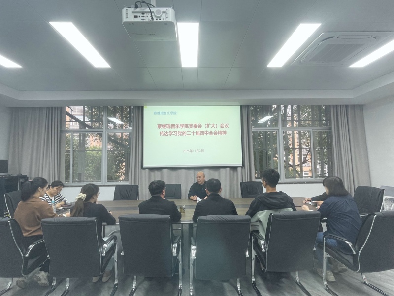 11月3日,蔡 thisav 党委理论学习中心组召开扩大会议,传达学习党的二十届四中全会精神。全体班子成员、科级干部、师生党支部书记等参加,会议由学院党委书记张开全主持。