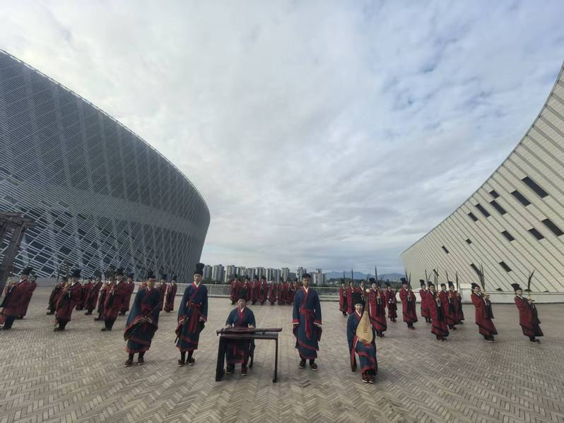 近日,蔡继琨音乐学院佾舞传承示范基地受邀参加《非遗里的中国》·福州篇拍摄录制。本次拍摄由国家级非遗代表性项目《佾舞》代表性传承人李宗霖老师指导,音乐学院周伟博士组织《佾舞理论与实践》、美育通识课《中华佾舞礼乐文化的传承》、第二课堂“金课”《国家级非物质文化遗产“佾舞”》等三门课程中的部分学生66人参加本次拍摄。