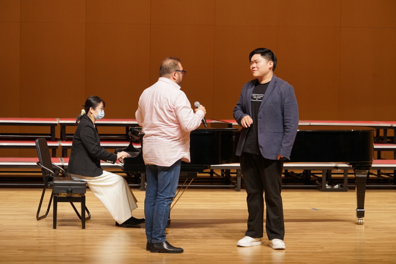 本场大师班,师生们受邀上台进行歌曲演唱,莱昂纳多·格拉梅尼亚教授分别对演唱者进行专业的指导,涉及到演唱技巧、情感表达、气息运用等多个演唱角度。