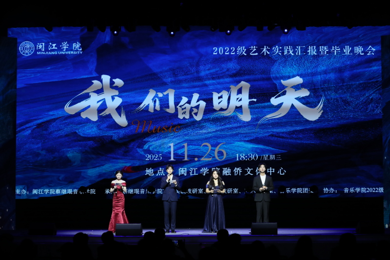随着最后一个音符在融侨中心缓缓消散,《我们的明天》2022级毕业艺术实践晚会画上了圆满的句点。回望四年求学路,从初入校园的懵懂青涩,到如今站上舞台的从容绽放,全都离不开学院领导的悉心关怀,离不开各教研室老师们的专业指导与耐心陪伴,也离不开同窗之间彼此的鼓励与扶持。同学们终将奔赴山海,以音乐为帆,驶向属于自己的“我们的明天”。