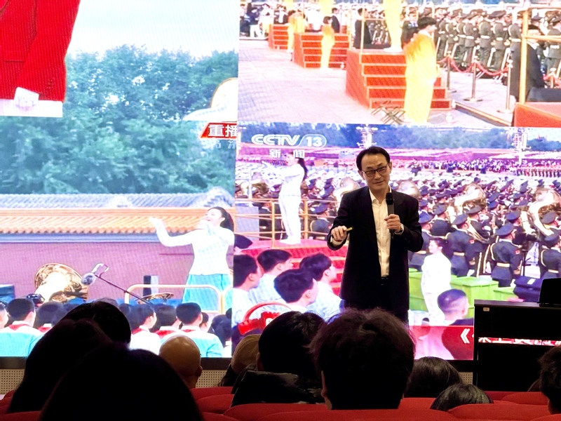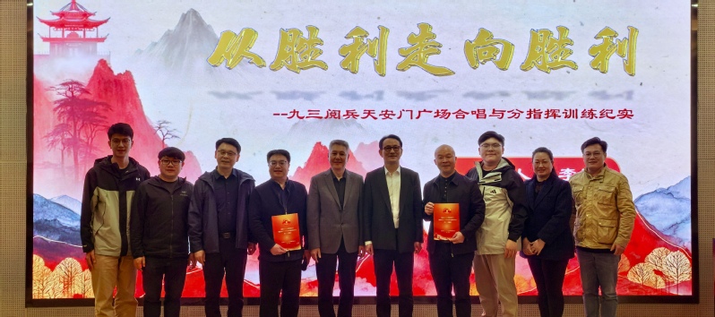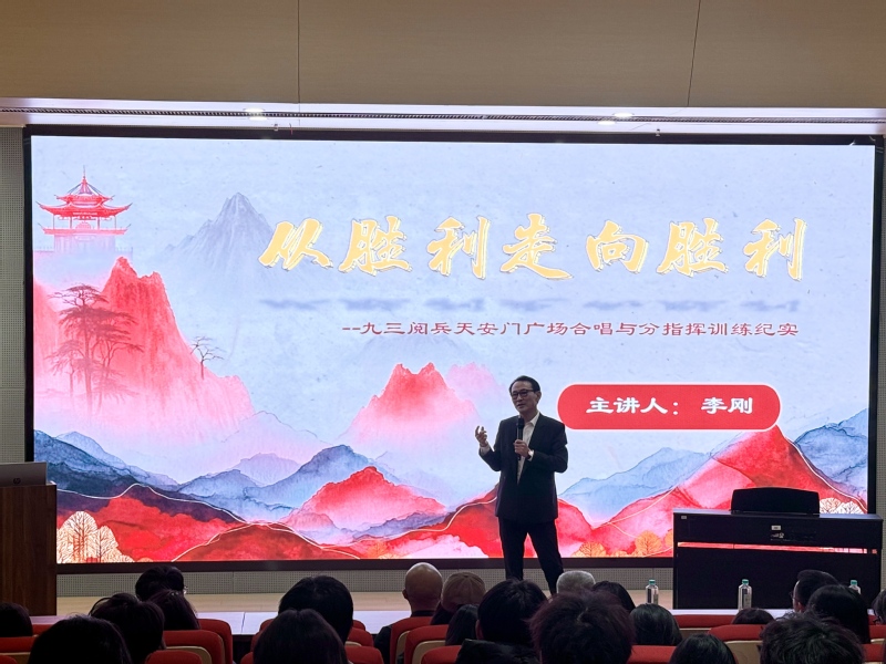 为进一步用好中国人民抗日战争暨世界反法西斯战争胜利80周年纪念活动激发的强大正能量,持续用好纪念活动这本生动的爱国主义教材,12月8日晚,蔡 thisav 联合校团委共同举办《从胜利走向胜利》艺术思政课。本次课程特邀纪念中国人民抗日战争暨世界反法西斯战争胜利80周年天安门广场阅兵合唱与分指挥训练的总指挥、首都师范大学音乐学院李刚教授主讲。