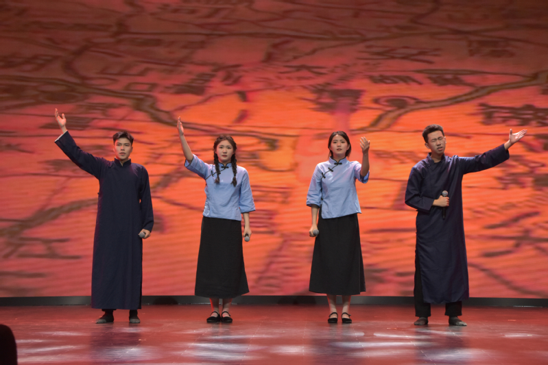 12:朗诵《民族的丰碑》让我们感受到铿锵岁月中每一位革命先辈的灿烂光辉。忆往昔,峥嵘岁月,革命先辈用鲜血向我们证明:星星之火可以燎原!四位同学的倾情朗诵引来现场掌声阵阵,观众赞不绝口!