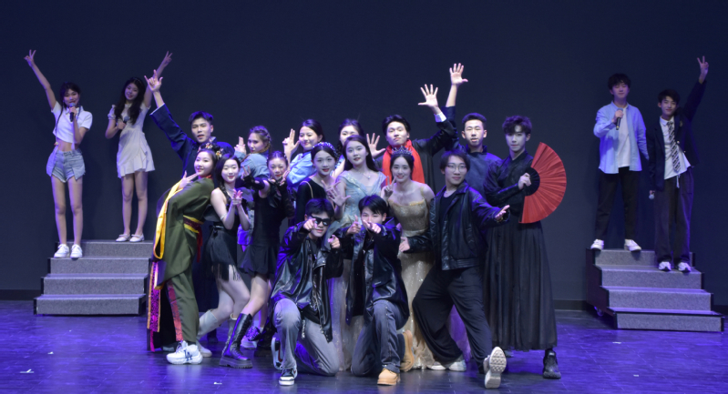 最后,在场的领导、老师和表演人员上台影留念,为演出画上圆满的句号。本次演出是22级表演专业全体20名同学自入学以来,在课余时间进行了充分的排练和磨合的最终呈现,尤其是演出前夕还有军训等事项的紧凑安排,同心山成玉、协力土成金,演出的顺利开展体现了他们锐意进取、精益求精的精神。