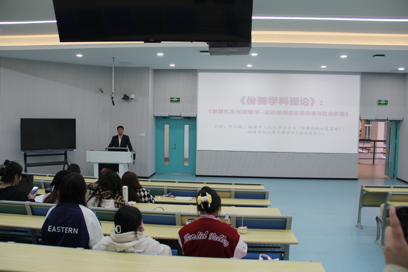 11月13日下午14:00,福建省非物质文化遗产佾舞项目代表性传承人李宗霖为音乐学院师生开展了主题为《佾舞礼乐光辉耀华——佾舞的历史传承与社会价值》的讲座,本场讲座由音乐学院副院长刘淘主持。