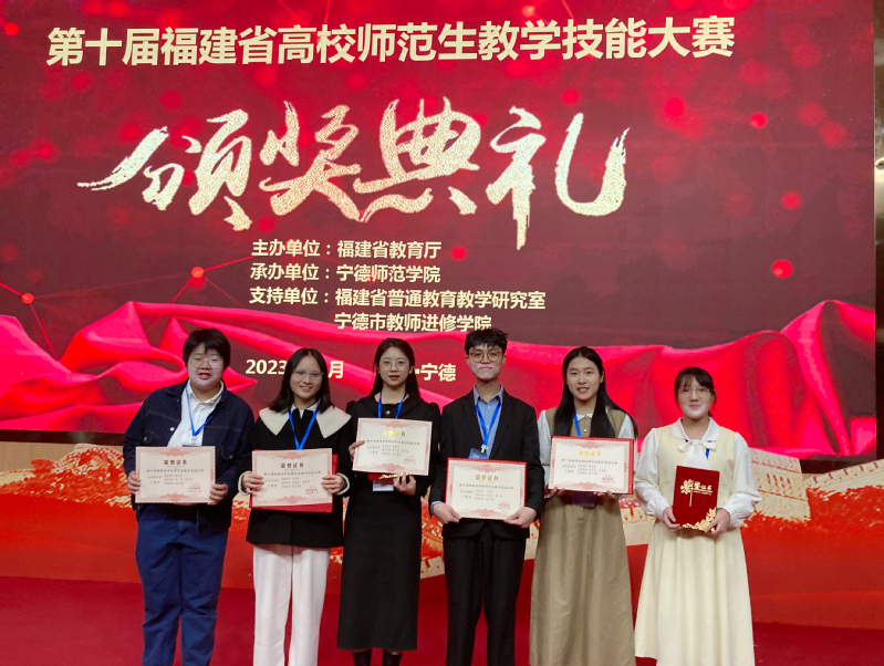 陈楚莹(左起第三)荣获第十届福建省高校师范生教学技能大赛三等奖